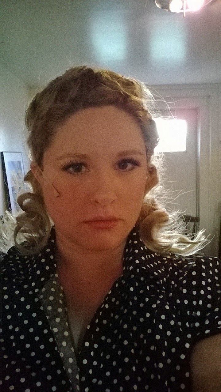 Any way, I thought it would be fun to blog about getting ready for this show. I play two parts in it. The first one is Jennifer Bowater-Smith. She's nuts. She's an artist who talks a mile a minute. Seriously, when I was first off script and getting her down - this lady talks faster than I can think! How did I finally get it? Practice. That's all it takes, really. She's also very self-absorbed. I know. Not too hard for me to get into character, there. ;)